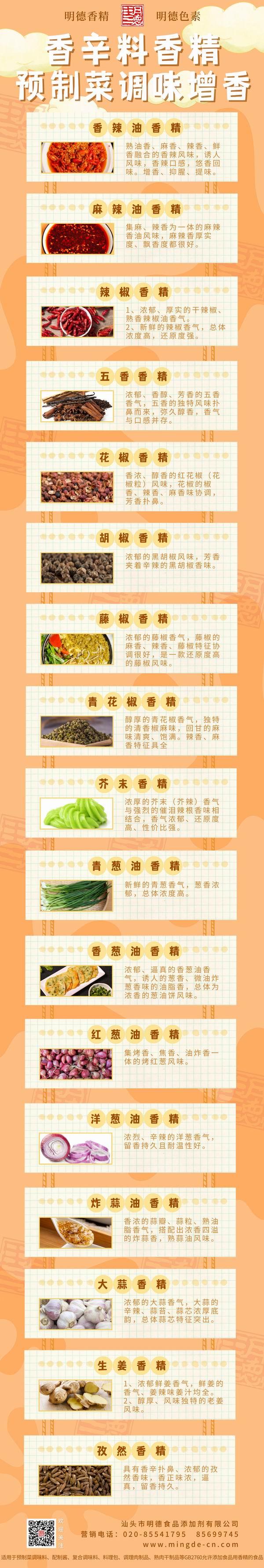 此外 明德食品添加劑 還研發(fā)了眾多香辛料風味類香精,如紫蘇、八角、茴香,如藤椒、花椒、麻椒等等風味,近10年來在調味料、醬料、火鍋底料多有應用,頗受好評。諸如此類,各有特色。歡迎有興趣的廠家朋友們咨詢聯(lián)系!