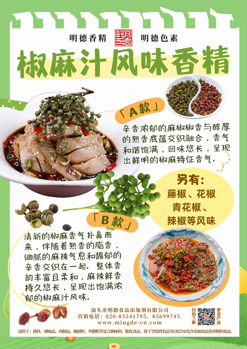 明德椒麻汁風(fēng)味香精 | 鮮香麻辣 平衡濃郁與層次汕頭市明德食品添加劑有限公司推出的椒麻汁風(fēng)味香精,精準還原花椒與辣椒的獨特風(fēng)味,融合醇厚底香與豐富層次,適用于多類調(diào)味醬、鹵味、川味餐飲預(yù)制菜及休閑食品,為B端工廠提供穩(wěn)定且可控的麻辣風(fēng)味解決方案。