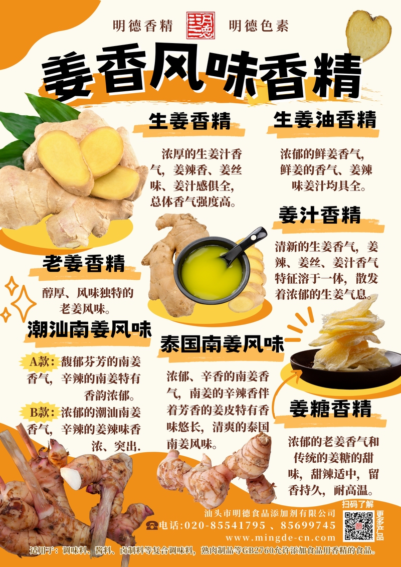 明德姜香風味香精 姜之本味 層次盡顯汕頭市明德食品添加劑有限公司推出的姜香風味香精系列,覆蓋生姜、姜汁、生姜油、老姜、潮汕南姜、泰國南姜等多種調性。產(chǎn)品風味真實,留香穩(wěn)定,適用于醬料、腌制料、調理食品、肉制品、風味飲品、糖果、烘焙及外撒粉等B端應用,幫助工廠穩(wěn)定呈現(xiàn)鮮明的姜辣香與去腥提鮮效果。